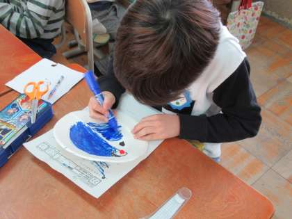 「コロコロゆらりん」では,ゆらゆらする紙皿にいろんな飾りをつけて,作品をつくりました。海賊船やくじらなど,うまくゆらゆらするのが生かされている作品もありました。