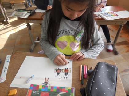 4月から入学する1年生のプレゼントを作りました。半日入学で使うバッグです。すてきな作品がたくさんできました。新しい1年生喜んでくれると嬉しいな。
