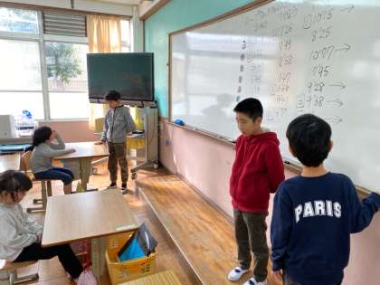 算数の学習の時間に,「ストップウォッチチャレンジ」をしています。楽しみながら,時間の感覚を身につける学習です。