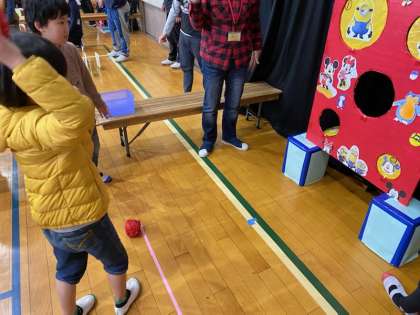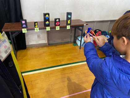 次のお店では,ボールや弓をつかってのまとあてができました。