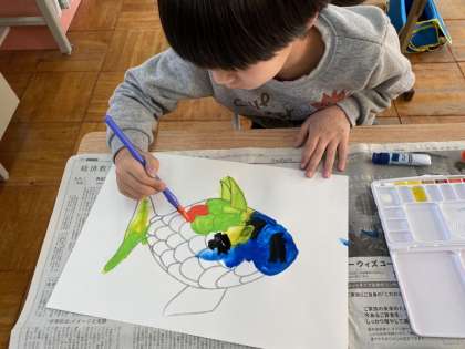筆を洗う時のルールや準備の仕方を確認して,好きな色で塗りました。とっても楽しかったようです。