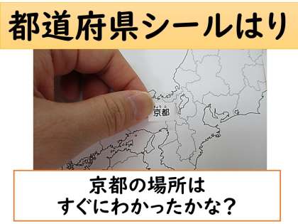 「わたしたちの京都」の最後のページに白地図があり,そこにシールをつけています。
