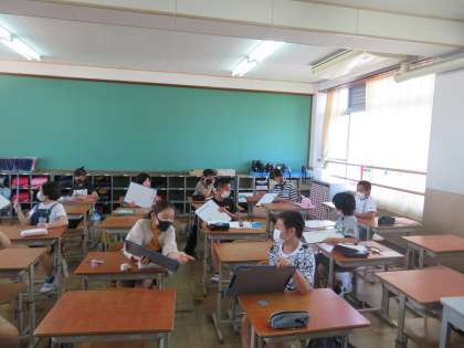 今週から,6時間授業になっています。国語の学習では,同じ形で同じ音の漢字や,意味について考えました。
