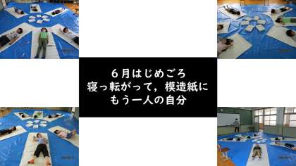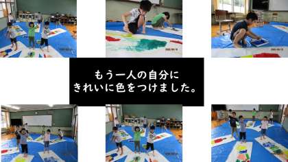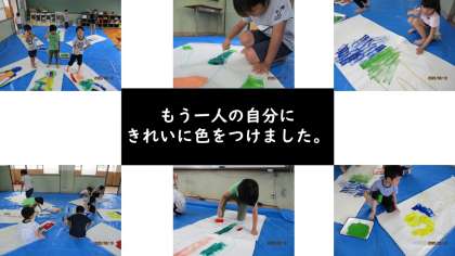 模造紙に寝転んで,鉛筆書きにした「もう一人の自分」