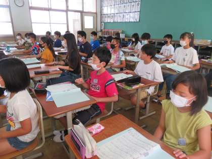 まだ,音楽室で合唱や合奏はできませんが,できることで,音楽に親しんでいます。