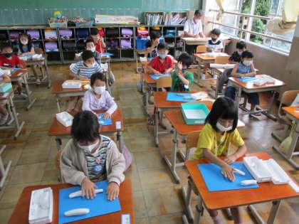 ねんどで いろんな ひもを つくりました。「こんなん できたよ。」とみんな みせてくれました。