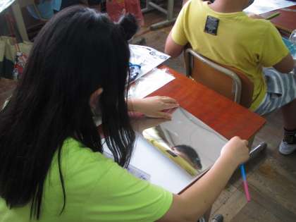 図工の学習で,ミラーシートを使った作品をつくり始めました。