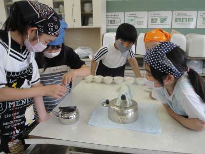 家庭科の時間にお茶をいれました。「おいしい!」の声がたくさん上がっていました!