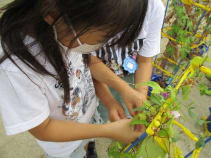 1ねんせい あさがおの種を取りました