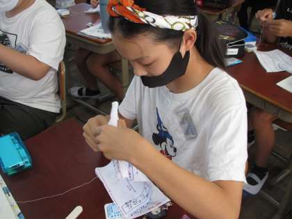 お手本を見ながら,一生懸命縫いました。