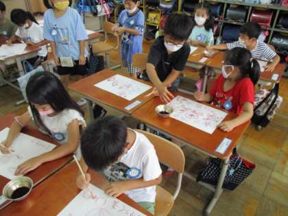 1ねんせい あさがおの花で色水遊び