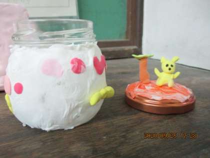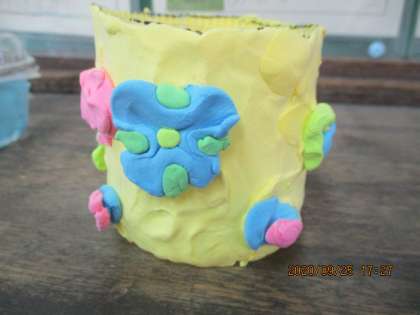 身近にある空き容器がこんなにすてきな小物入れに変身します。お家からたくさんの材料を持って来てもらい,アイデア溢れる楽しい活動となりました。