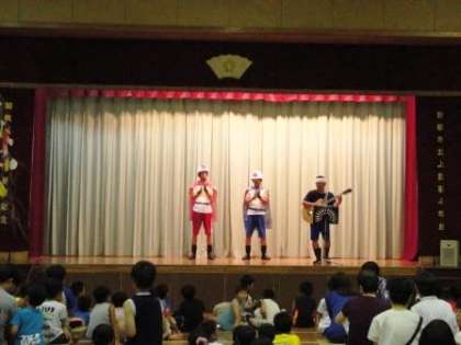 体育館では,六斎念仏の上演や,PTA・おやじの会の方による寸劇「あんしん・あんぜんマンの旅」,まちがい探しクイズなどがあり,出演者の方々の熱い思いが伝わってきました。200人以上の参加で盛況のうちに終わりました。