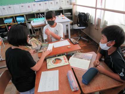 「ランドセルは海をこえて」の学習では,ノンフィクションの本を紹介するポップを作って紹介し合いました。