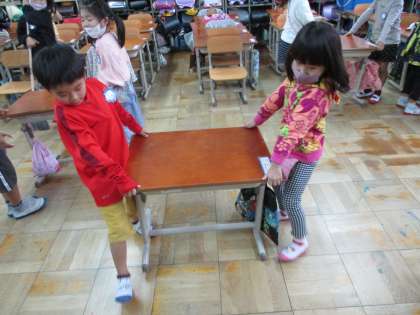 ほうき,ゆかぞうきん,机椅子運び どれもできるようになってきました。