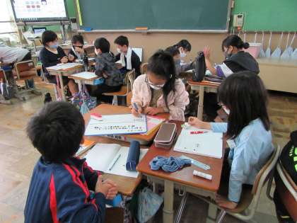 ホワイトボードを使って,問題についてグループで話合いをしました。