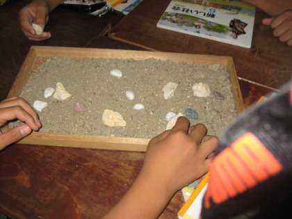 社会科の室町文化を学ぶ学習で,石庭造りの学習をしました。実際にミニチュアの石庭を造ることで,その時の庭園造りに関わった人たちの技術の高さに関心していました。