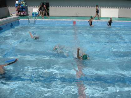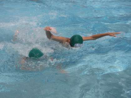 中には,水泳を習っている子どもたちがいるので,見本になるようなきれいな泳ぎを披露してくれています。さらに,手足の使い方も教えてくれています。