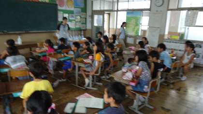 毎週金曜日恒例のフッ化物洗口。「メリーさんのひつじ」の曲にあわせて,うがいをしていきます!歯は生きるために大切なものです。右の歯をぶくぶく…左をぶくぶく…。そのときに,顔も右,左と動くのがとてもかわいらしい3年生でした!