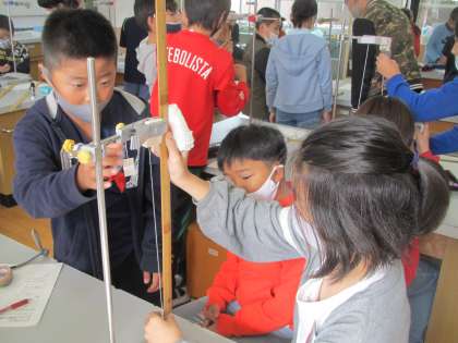ふりこの長さを変えたり,おもりの重さを変えたり,ふれはばを変えたりと,条件を変えて実験しました。
