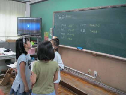 外国語活動では,世界のあいさつや友だちと英語であいさつを交わしたり,様々な言葉も歌で覚えたり,ゲームで覚えたりしました。