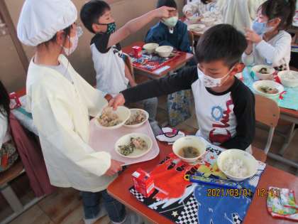 給食当番も上手になりました。