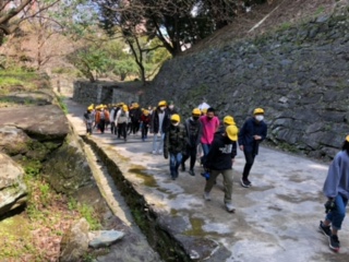 和歌山城駐車場に到着しました。お城に向かって坂道を歩いて行きます。和歌山もいい天気です。