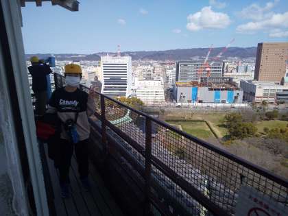 お城から和歌山市街が,とてもよく見えました。お城は想像以上に高く,風が強かったようです。