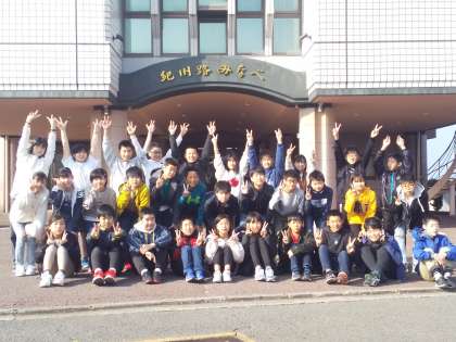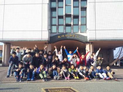 出発前に宿舎「紀州路みなべ」を背景に,記念撮影をしました。
