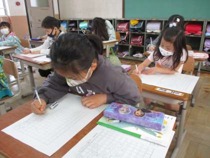 国語「たんぽぽ」の学習では,どんなお話なのか話し合い,文をきれいに書きました。絵も描きました。