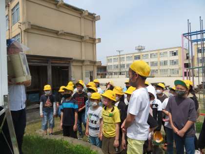 理科の学習では,天気と気温の学習が始まりました。百葉箱の中がどのようになっているのかを見てみました。