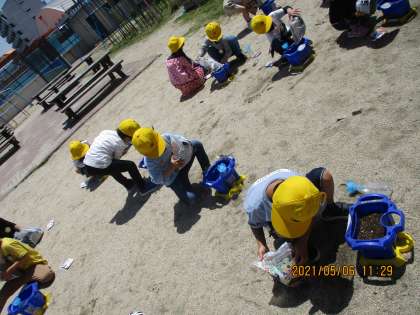 1年 5月 あさがおの種まき