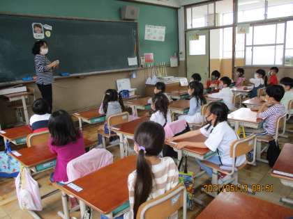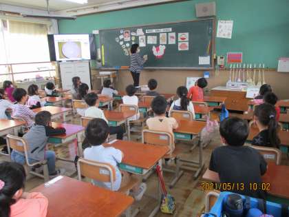 栄養教諭の早光先生に,給食の食べ方を教えていただきました。
