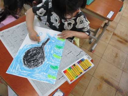 2年生との学校探検で見つけたものを絵にかきました。