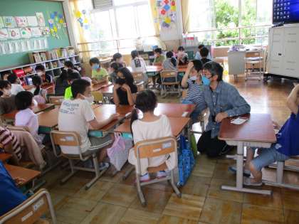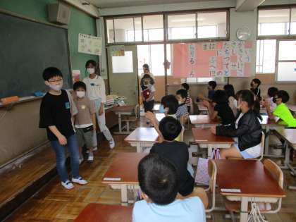 たてわりグループに分かれて,1年生と自己紹介やゲームをしました。