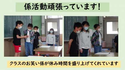クラスの係活動が活発に行われています。今日は,その中でも「お笑い係」について紹介します。