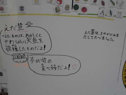 毎日,給食委員会の当番のみなさんが給食室前のホワイトボードに今日の献立について,書いてくれたり,給食時間には,放送してくれたりしています。