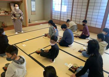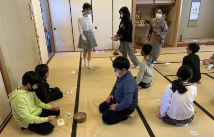 子どもたちは、先生や茶道部の子の作法をまねしながら礼儀を覚えようという姿もたくさん見られました。茶道部の子どもたちは、みんなが茶道を楽しんで、よい経験ができたことを喜んでいたようでした。