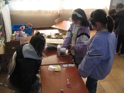 秋見つけで見つけたどんぐりや落ち葉などを使って、