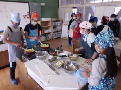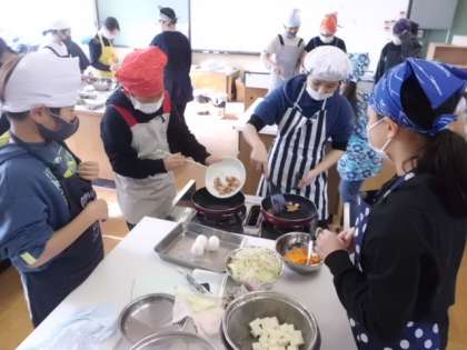調理実習をしました。小学校最後の調理実習。今まで学習してきたことをもとに子供たちが段取りを考えて進めました。おいしい「豆腐チャンプルー」が完成しました。グループごとに協力して取り組めました。笑顔があふれる素敵な時間でした。調理実習は,おうちで作ることができて初めて意味があるものです。また,ご家族の方につくることができる機会があればと願います。