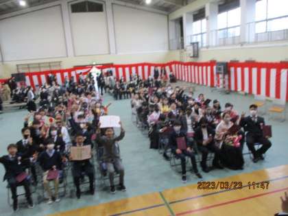 卒業おめでとうございます。素晴らしい式でした。起立、礼はビシッとそろっており、別れの言葉は今までのどの練習よりも、息がぴったりでした。「旅立ちの日に」の合唱も、今までで一番美しい声でした。次のステージでの活躍遠くから見守っています。