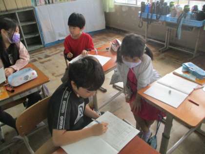 ノートに書いた自分の考えをペアや全体で交流しながら,様々な方法で求めることができることに気付いていました。