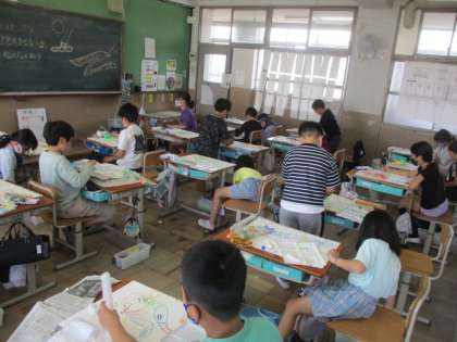 子どもたちは,水の量や,絵具の合わせ方,筆の置き方などを工夫しながら丁寧に描いていました。