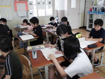 チャレンジ体験3日目は、4年生で体験活動をしてもらいました。体育や理科、習字などの学習の様子を見たり、時には、寄り添って教えてくれたりしました。4年生の子どもたちも中学生のお兄さんお姉さんたちに褒めてもらえるよう、いつも以上に張り切って学習に臨んでいました。