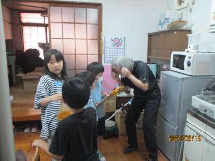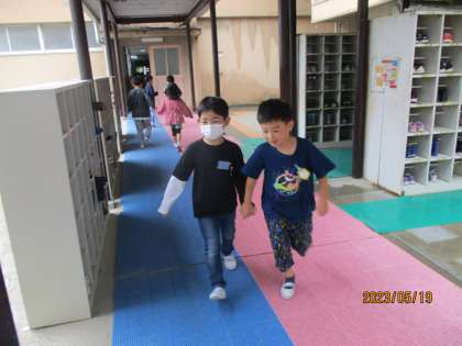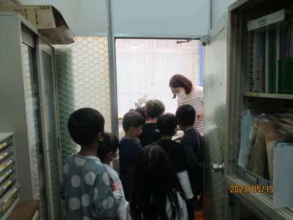 今日は学校探検をしました。2年生が案内役となって、学校の色々な教室に連れて行ってくれました。初めて入る教室に興味津々の1年生。優しい2年生のおかげで、とても楽しい学校探検になりました。