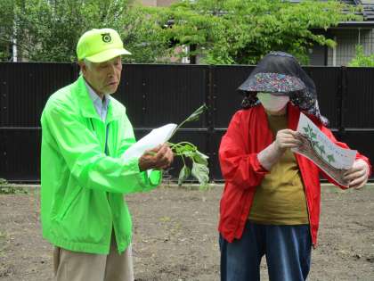 今日は、さつまいもの苗植えをしました。地域の「末広会」の方々にお手伝い頂きました。苗の植え方をわかりやすく教えて頂きました。