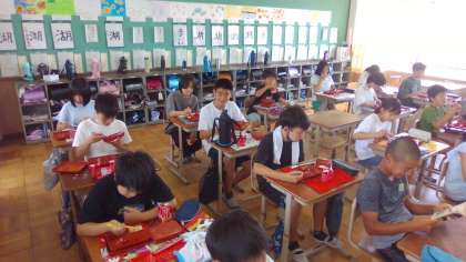 中学校給食を試食しました。ちょっと量が多いと感じている子が多かったようですが、おいしいという感想がたくさん見られました。