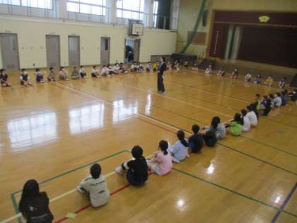 今日は,今年初めての水泳学習を予定していましたが,あいにくの雨だったため,学年ででアイスブレイクをしました。