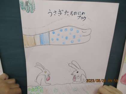 国語科では、スイミーの学習であらすじや登場人物を学習しました。レオレオニさんの他の本を読んで、みんなに見てもらう自分だけのオリジナルブックを作りました。オリジナルブックには、人物紹介と呼んだ感想をかきました。