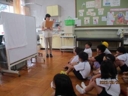 9月の発育測定がありました。どの子も身長が伸びていました。大阪先生からは、睡眠の大切さを教えてもらいました。
